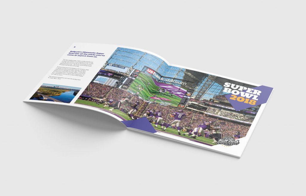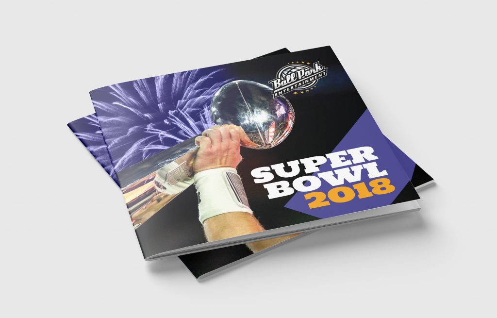 We had a ball designing this fun and engaging corporate event package brochure for the 2018 Super Bowl.